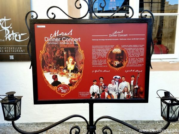 Mozart Dinner Concert (Salzburg) - All You Need to Know BEFORE You Go The Mozart Dinner Concert is held in the oldest restaurant in central Europe (first mentioned in 803 & one where the Mozart family used to dine), which is attached to St. Peter's Monastery. They try to take you back to Mozart's time during an evening that could have taken place in 1790. Be sure to get there early so that you can secure good ...